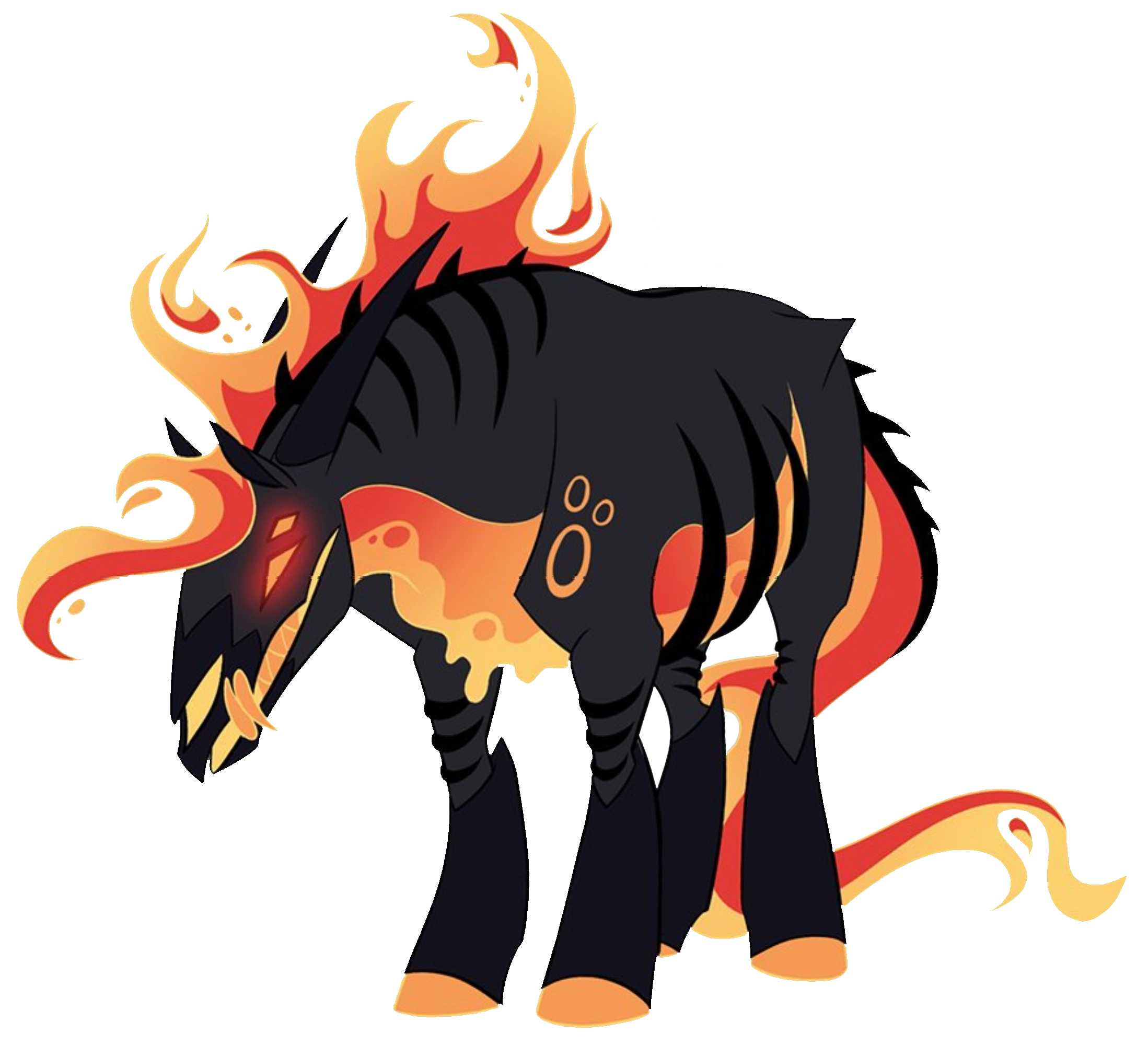 - Flaming Body - It possesses a lava-like underbelly and a flaming mane and tail, hinting it has some form of pyrokinesis, though this has yet to be confirmed.