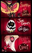 - Vivziepop discussed her plans for an episode that potentially involved a very serious A-plot contrasted against a very comedic B-plot, with the characters all trying to figure out how to remove a hornets nest from the hotel.[193]