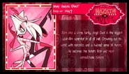 - Vivziepop compared this to the Helluva Boss pilot, which she says, although it's great, is obviously so wrong that it does not reflect the series at all, and also has lore problem, so there's nothing about it that's canon, so she felt like that pilot needed redoing more than the Hazbin Hotel pilot would.[192]