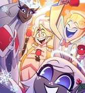 - When talking about the Hellaverse having many sides in an interview on October 17, 2023, Vivziepop explained that the main side deals with Lucifer, and Charlie being the princess of Hell, and Heaven, and kind of big grand themes of redemption, and is much more biblically sourced, whereas Helluva Boss deals with the Deadly Sins and the Hellborn species, and exists separately to the things happening in Hazbin Hotel.[188]